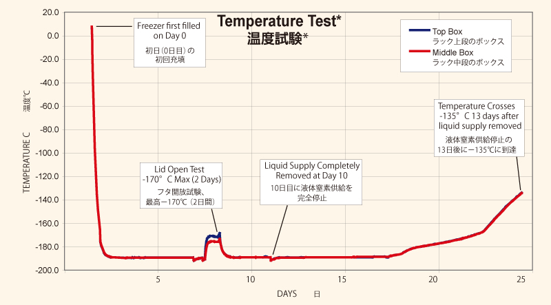 * 温度試験の結果はメーカー推奨の液面高で収納システムを完全装備した状態の