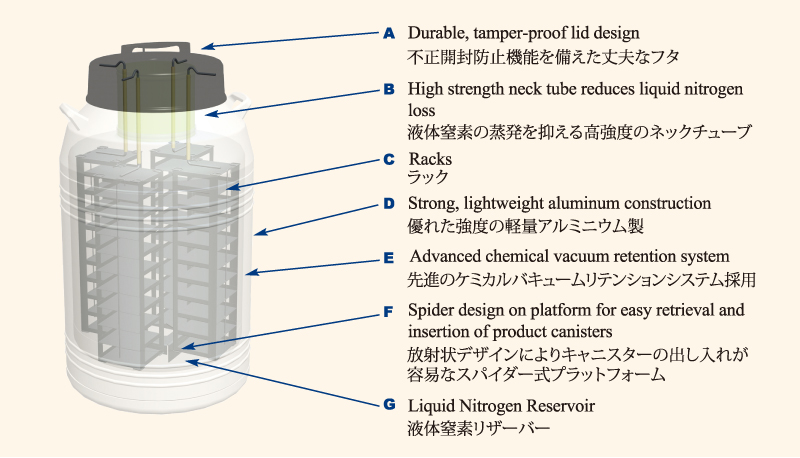 | 液体窒素容量(L) | 47.4 | 61 | 121 | 175 |