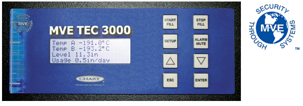 TEC 3000は日時の記録された変更不可能な重要データを不揮発性メモリーに保存することができます。これは容器の性能評価やトラブル解決に役立ちます。メモリーには30,000件のイベントを保存でき、保存容量の目安はおよそ10年分です。次のデータが保存されます:日付時刻付き温度、LN2レベル、使用液量、アラームおよびイベント(発生した場合)