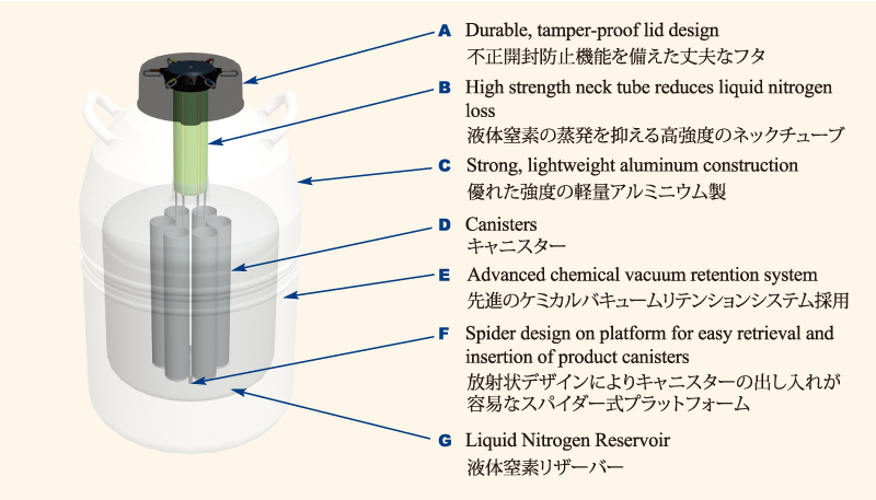 | 液体窒素容量(L) | 34.8 | 67.5 | 42.2 | 47.4 | 47.4 | 47.4 |