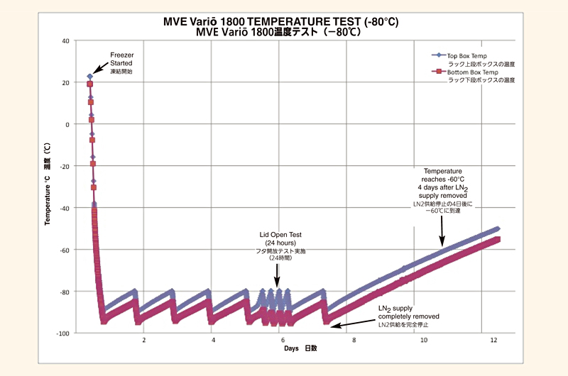 * 温度テストの結果はメーカー推奨設定で収納システムを完全装備した状態のMVE VariōTM 1800の